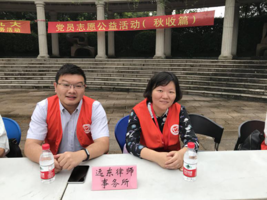 2017年9月26日, 上海市远东律师事务所秦皛淼律师、郑俊实习律师参加了曲阳社区2017年“全国科普日”志愿服务系列活动之“志愿心向党,喜迎十九大——党员志愿公益活动(秋收篇)”,为曲阳居民提供公益法律咨询服务。
