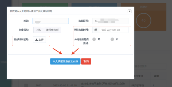 2025年在外地执业并已完成当地培训的律师,可上传相关证明材料,经审核后计入本年度学时。上传途径如下: