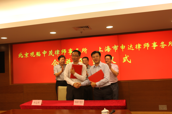 8月2日下午,北京观韬中茂律师事务所和上海市申达律师事务所合并仪式在区政府会议中心举行。中共虹口区委副书记、区长曹立强会见了两所律师代表,上海市司法局副局长王协、虹口区副区长张伟、上海市律师协会副会长周天平出席合并仪式并致辞。观韬中茂律师事务所管委会联席主任盛雷鸣、上海市申达律师事务所主任陶武平代表双方发言,观韬中茂所管委会主任崔利国与申达所管委会主任周知明代表双方签署合并协议。