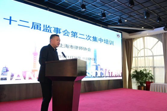 2025年11月28日至29日上海律协召开十二届监事会第二次集中培训。上海律协监事长朱林海,副监事长曹志龙、屠磊,监事方标、李镔、陈李毅、柴小雪、翁卫国。监事、资产与财务专项监督委员会主任潘书鸿,副主任王徐苗、罗根达,监事、律工委专项监督委员会主任李向农,副主任陆艳、施磊,监事、专业委专项监督委员会主任黄荣楠,副主任陈永兴、金雅珮、解冰,秘书长助理、办公室主任陶丽萍以及三个专项监督委员会委员共60余人参加了培训会议。本次培训会议由监事长朱林海主持。