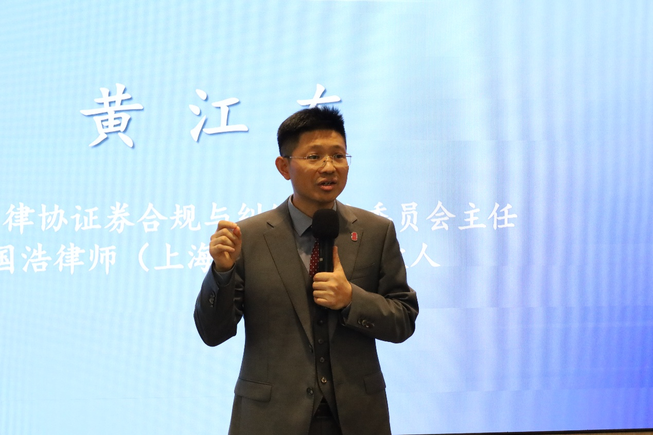上海律协证券合规与纠纷专业委员会主任、国浩律师(上海)事务所合伙人黄江东向与会嘉宾介绍了证券合规与纠纷专业委员会月度研讨会的开展模式和状况,并感谢与会嘉宾、同仁对本专委会研讨会系列活动的到场支持。