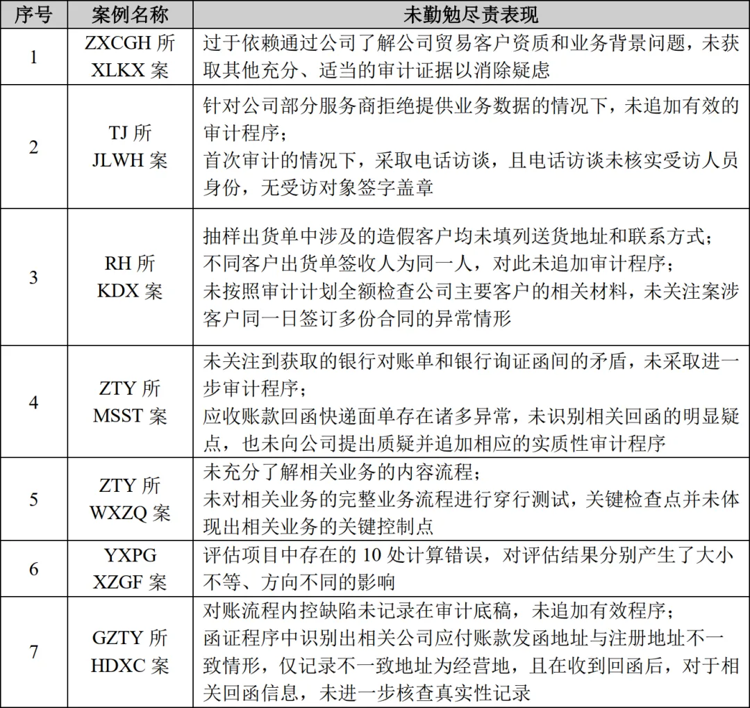 以审计为例,会计师事务所审计程序的执行情况有底稿记录,审计程序执行不到位极容易被发现,且针对有底稿证据的违规失实,可申辩成功的可能性较低。因此,会计师审计时务必严格依据执业规则要求执行。