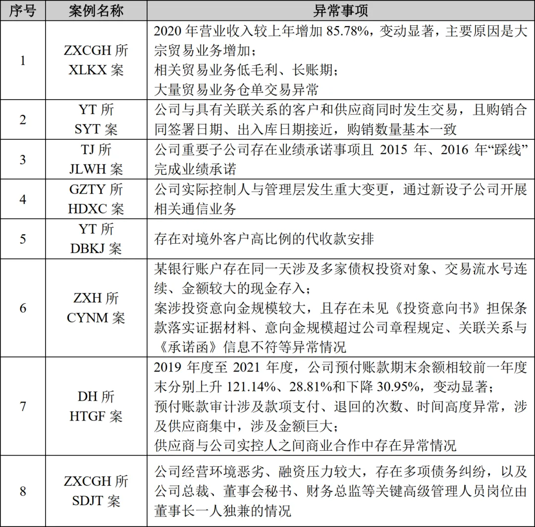 具体到2024年中介机构未勤勉尽责的案件中,仍有较多的中介机构提出公司存在故意舞弊的申辩理由。对此,监管部门的关注点则在于中介机构是否对明显异常的事项予以充分关注。对于中介机构而言,具有重大性的事项本就是其应关注的重点,中介机构未匹配相应关注进而导致相关事项出现虚假记载的,即会被认定为未勤勉尽责。在此部分列举2024年度中介机构行政处罚案例中涉及重大风险的情况: