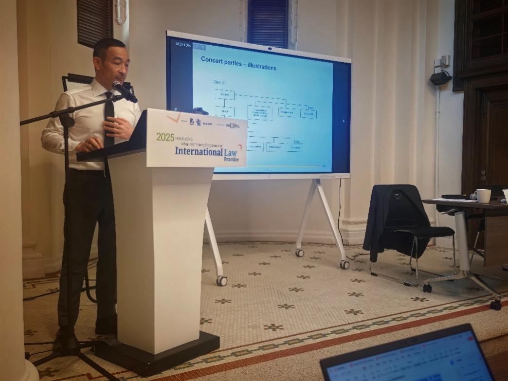 培训次日,英国史密夫斐尔律师事务所合伙人唐律师、亚洲国际法律研究院联席主席梁定邦博士、美国众达律师事务所薛强博士带领学员回到了争议还没开始的地方,系统讲授了国际收购兼并、国际资本市场的基本原则以及地缘政治影响下的法律合规。