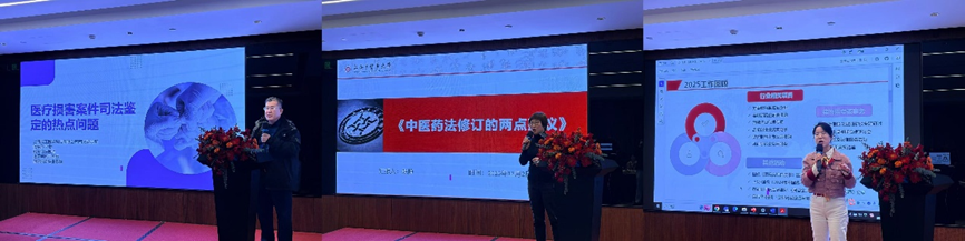 在专题发言环节,多位委员与特邀嘉宾围绕医药健康法律实务的前沿与热点问题进行了深入交流。上海旭正司法鉴定所法医张晓彤受邀出席本次会议,就医疗损害司法鉴定的程序规范、实体认定难点及与医学会鉴定的差异等实务问题进行了专业分享;张静委员从中医药法律体系完善的角度,探讨了中医医疗损害鉴定等领域的现存问题与改革方向;徐丹丹委员结合自身参与的年度项目,分享了在医药企业投融资、合规等领域的实务经验与思考。