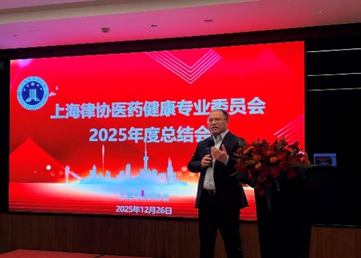 2025年12月26日下午,上海律协医药健康专业委员会(以下简称“医专委”)在上海市徐家汇中心城际酒店会议厅召开2025年终工作总结会议。上海律协副会长徐宗新出席会议并致辞,上海律协监事会专业委专项监督委员会代表及医专委委员、干事共计六⼗余⼈参加了会议。