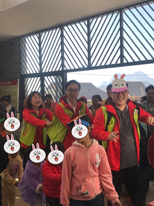 第一站律师们来到黄浦区对口帮扶的竹塘乡云山村。2018年黄浦区对口支援为云山村统一修建了砖瓦房和新的公共厕所。之前村民们和牲畜一起住在简陋的木头房里,如今砖瓦房修建好了,人畜也分离了,文明向前迈进了一大步。在新建的活动室里,阳光善行的社工,当地的初中志愿者迅速地将活动室布置成上课的教室,用图片和音乐开始和孩子们一起学习“猪”、“狗”、“青蛙”、“兔”等的普通话发音,力求让到场的每个孩子都开口说普通话。律师们作为志愿者配合辅导,并跟孩子们一起做起“拔萝卜”、“青蛙捉害虫”的小游戏,让他们在快乐的玩耍中寓教于乐。
