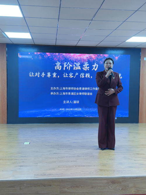 11月15日,由青浦律师工作委员会指导、青浦区女律师联谊会主办的“女律师礼仪特训营”在区妇女儿童服务指导中心成功举行。本次活动特邀上海市青浦区礼仪文化协会会长、国家注册高级礼仪培训师潘琼老师担任主讲,围绕“高阶温柔力:让对手尊重,让客户信赖,让自己发光”主题,为女律师群体带来了一场兼具专业深度与人文温度的形象力提升课程。