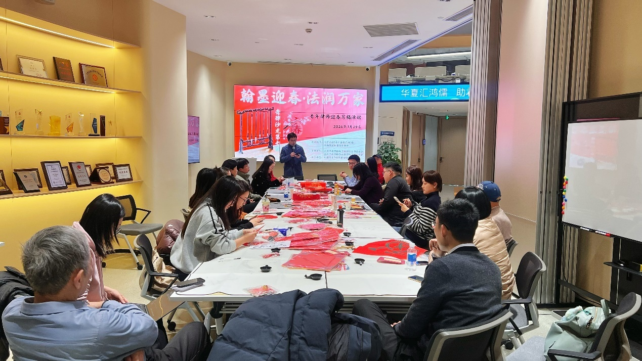 1月29日,黄浦分会场活动率先在上海市君和律师事务所举办。随后2月1日,静安分会场活动在上海震亚律师事务所圆满举行。活动现场暖意融融,墨香四溢。黄浦分会场特邀上海市书法家协会会员、黄浦区书法家协会主席张伟舫现场指导。静安分会场则汇聚了上海市书法家协会理事、静安书法协会主席、上海市静安收藏协会会长杨继光,中国文房四宝协会副会长、高式熊艺术研究中心主任、上海市书法家协会理事、复旦大学图书馆顾问、静安书法协会秘书长陈标(陈彪),中国书法家协会会员、上海市书法家协会会员、静安书法协会副主席兼楼宇专业委员会主任张斌,上海市书法家协会会员、上海市教育学会书法专业委员会副秘书长、上海书协青年书法家协会常务理事、静安书法协会副主席兼青年专业委员会主任花汇等几位书法名家,与青年律师们分享了中国书法的艺术精髓与鉴赏心得,更从执笔、运腕到笔画结构,进行了细致演示与一对一指导,为青年律师们答疑解惑。